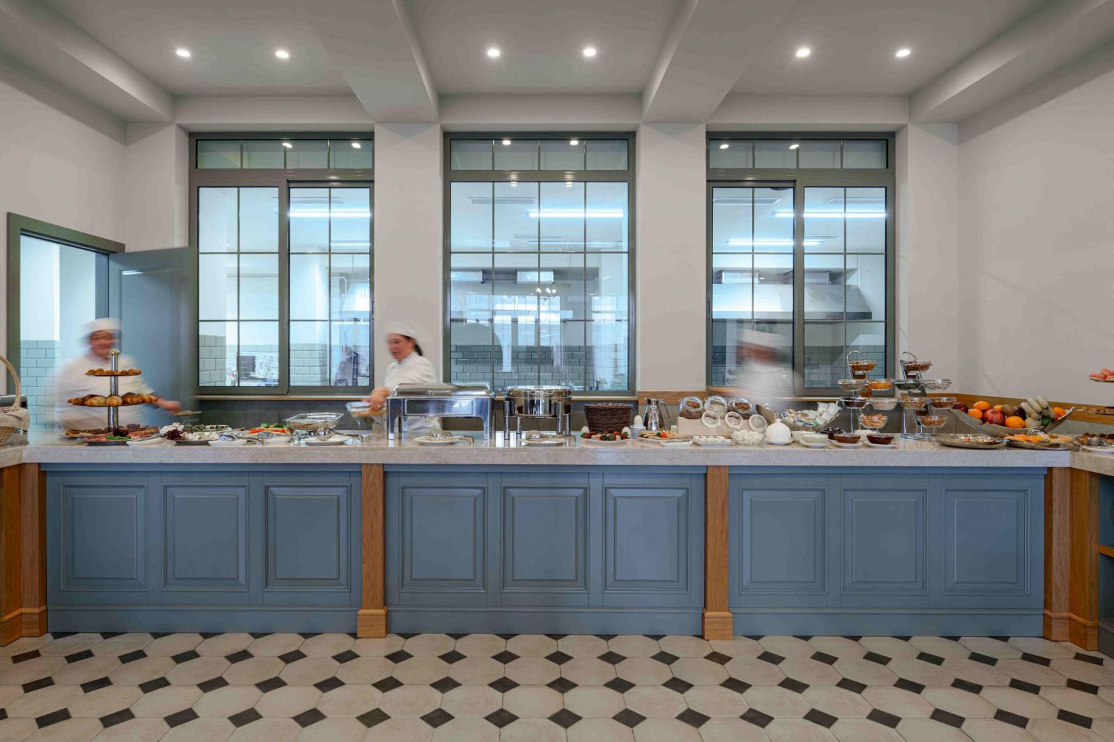 Jeden Morgen wird ein reichhaltiges Frühstücksbuffet serviert, das warme Speisen, frisches Gebäck, Pfannkuchen, Käse, Obst und Säfte umfasst – bekannt für seine hohe Qualität und große Auswahl.