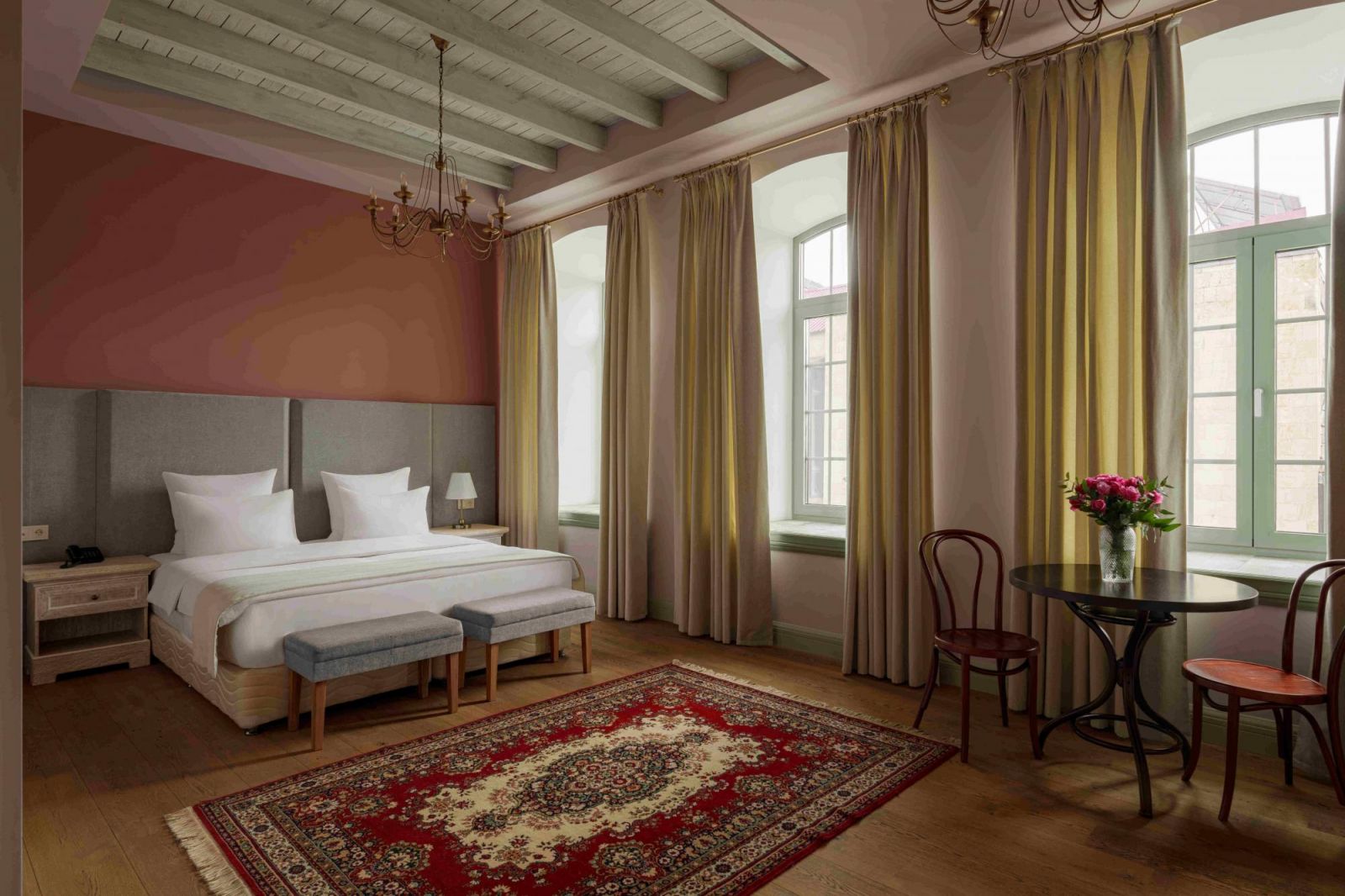 Das Grand Hotel Apricot Gyumri empfängt seine Gäste im Herzen der kulturellen Hauptstadt Armeniens mit einer einzigartigen Kombination aus Geschichte, Eleganz und modernem Komfort. Untergebracht in einem wunderschön restaurierten Gebäude aus dem 19. Jahrhundert – ursprünglich in den 1870er Jahren erbaut und einst Heimat des historischen „France“-Hotels – gehört die Anlage zum Kumayri Historischen und Kulturellen Reservat und steht unter staatlichem Schutz. Die klassische Fassade und das raffinierte Innendesign schaffen eine luxuriöse Atmosphäre, die bei jedem Besucher einen bleibenden Eindruck hinterlässt.Das 2021 eröffnete Hotel bietet stilvolle, klimatisierte Zimmer mit privaten Badezimmern, Stadtblick und allen wichtigen modernen Annehmlichkeiten. Gäste können auf der Terrasse entspannen, Getränke an der Bar genießen oder dank kostenfreiem WLAN im gesamten Gebäude verbunden bleiben. Zu den praktischen Einrichtungen gehören eine gemütliche Lounge, ein Aufzug, eine 24-Stunden-Rezeption, ein Concierge-Service und kostenlose Privatparkplätze. Weitere Dienstleistungen wie Zimmerservice, ganztägige Sicherheit, Live-Musik-Veranstaltungen und ein kostenpflichtiger Shuttle sorgen für einen reibungslosen Aufenthalt.